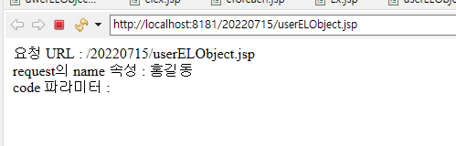 출력 값 code의 파라미터 값이 없어 null인데 EL에서는 null값을 공백으로 보여주어서 공백으로 표시된겁니다.