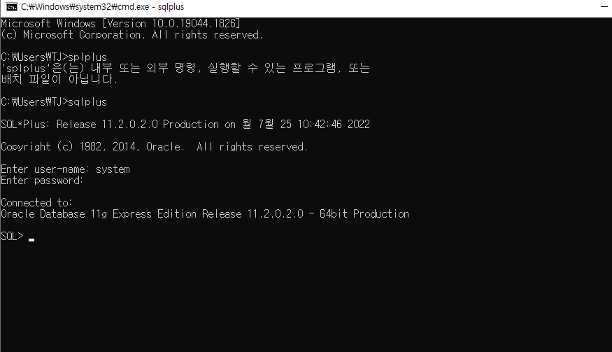 일단 sqlplus 로 접속하시면 user-name과 password가 나오는데