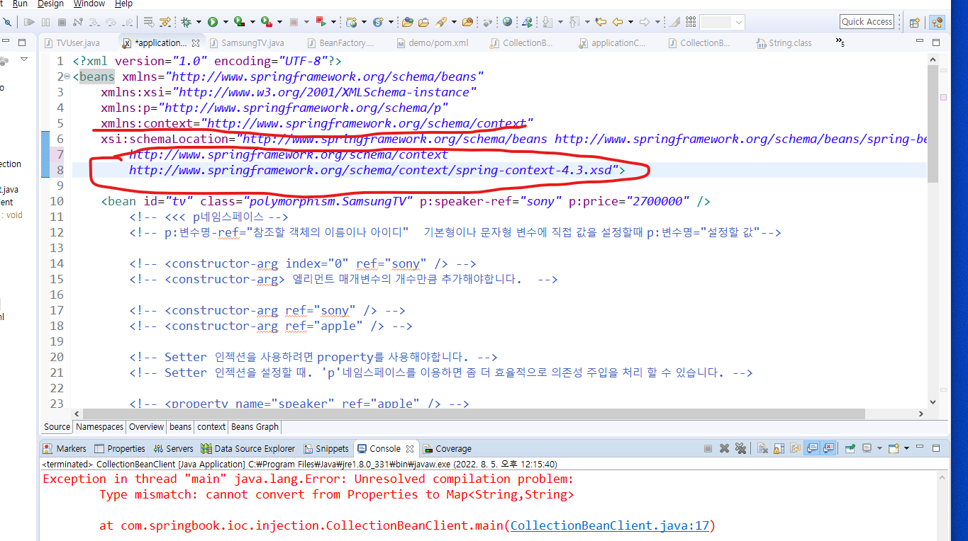 TV tv = (TV)factory.getBean("tv"); // applicationContext에서 빈아이디 tv로 성정한거를 적용해줘야함