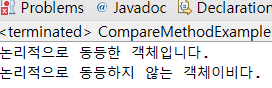 System.out.println("논리적으로 동등하지 않는 객체이비다.");
