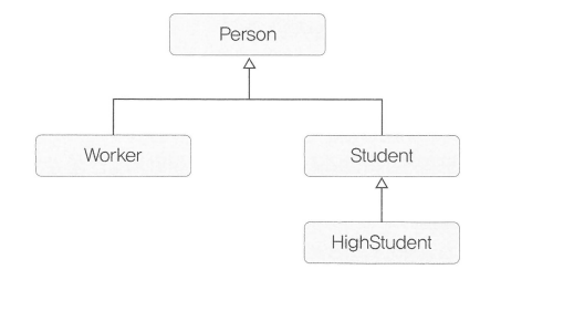 다음 수강생이 될 수 있는 타입은 4자리 클래스라고 가정하고 Person의 하위클래스로 Worker와 Student가 있고, Student의 하위 클래스로 HighStudent가 있습니다.
