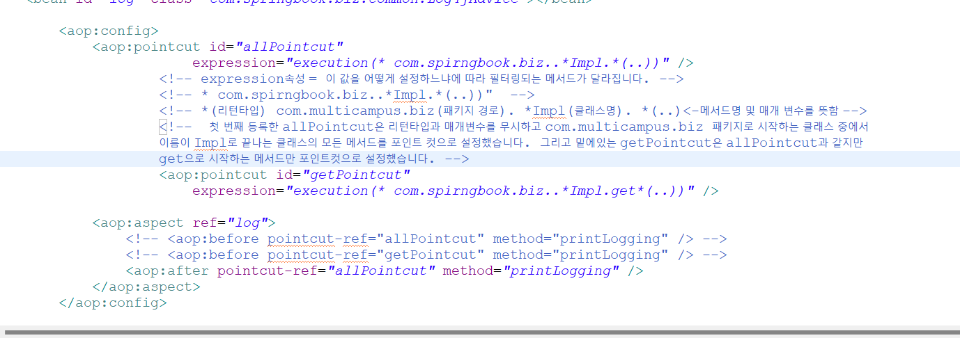 com.springbook..impl | com.springbook 패키지로 시작하면서 마지막 패키지 이름이 impl로 끝나는패키지 선택 |