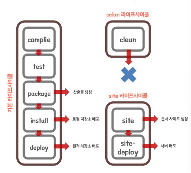 <build> 부분에서 설정할 수 있는 값들에 대해 설명하기 전에 "라이프 사이클(life-cycle")