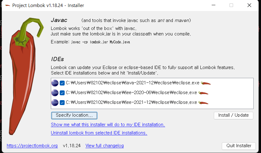 https://mvnrepository.com/artifact/org.projectlombok/lombok/1.18.24