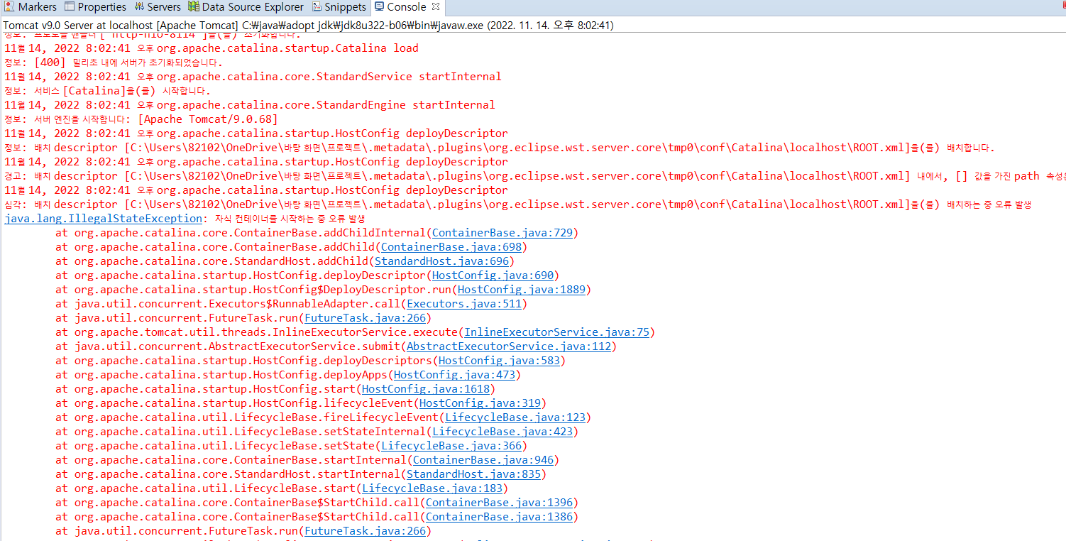이클립스 톰캣 연동 오류 발생 이게 오래전에 오류로 보긴 했는데