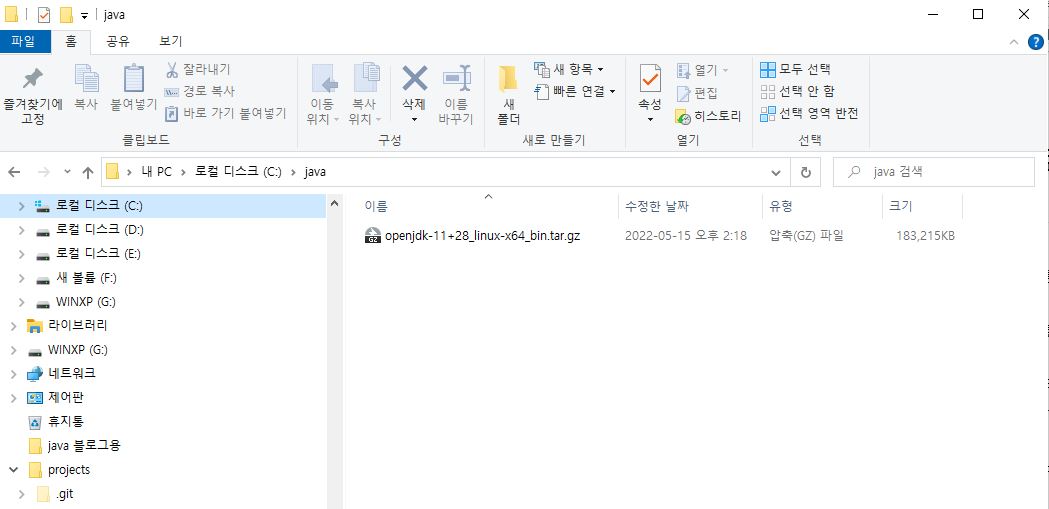 저는 c드라이브에 java라는 폴더를 만들어서 압축파일을 옮긴후 풀어주었습니다.