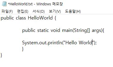 후에 cmd 창에 java "소스 파일명"을 입력해주시면 Hello World가 출력되는 것을 볼 수 있습니다.