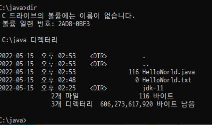 dir를 입력해보면 java 디렉터리에 있는 파일명들이 나옵니다.