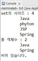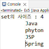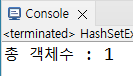 코드 실행시 Java 객체 하나가 중복이라 저장되지 않는 것을 확인할 수 있다.