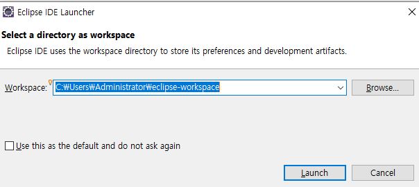 이클립스 실행후 workspace 디렉토리를 선택하는 창이나오는데 작업하는 폴더를 지정하는것입니다.