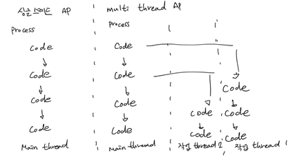 그렇다고 멀티 태스킹은 꼭 멀티 프로세스를 뜻하지는 않습니다. 한 프로세스 내에서 멀티 태스킹을 할 수 있도록 만들어진 애플리케이션들도 있습니다.