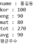 //평균이 90점 이상이면 우수 출력 아니면 미흡 출력