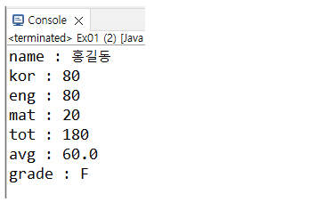 System.out.println("grade : " + grade);