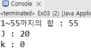 * 적 변수 sum 출력 1부터 10까지의 합 : 55