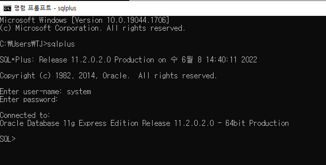 sqlplus 를 쳐보면 아이디와 비밀번호 치는게 나옵니다.
