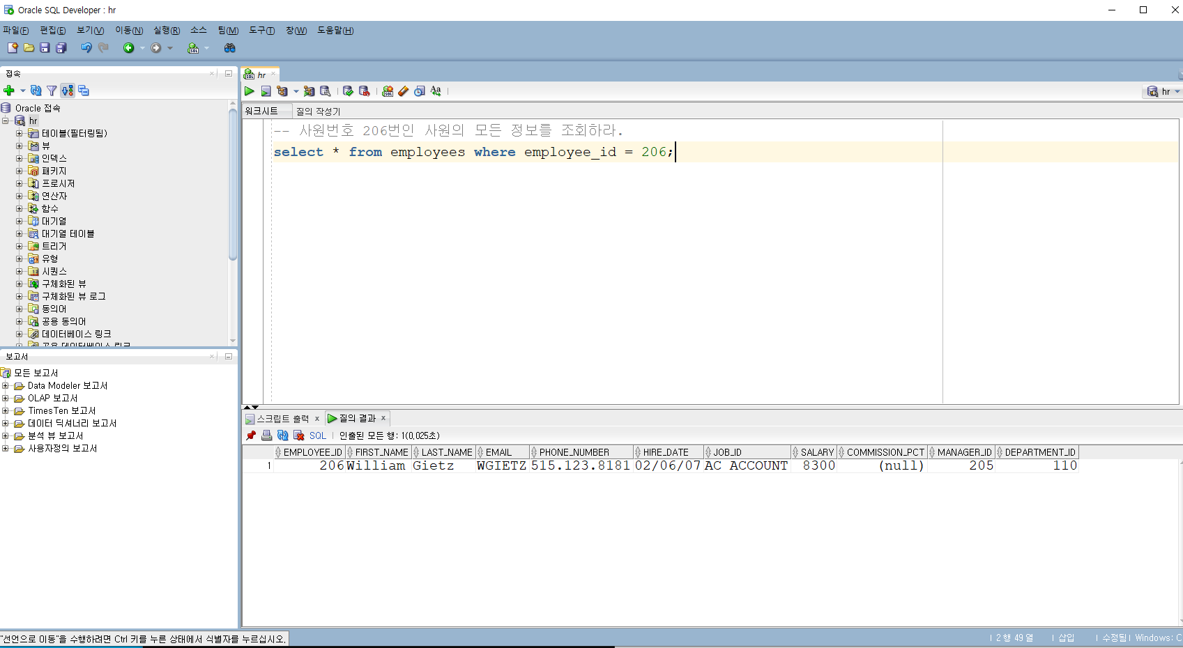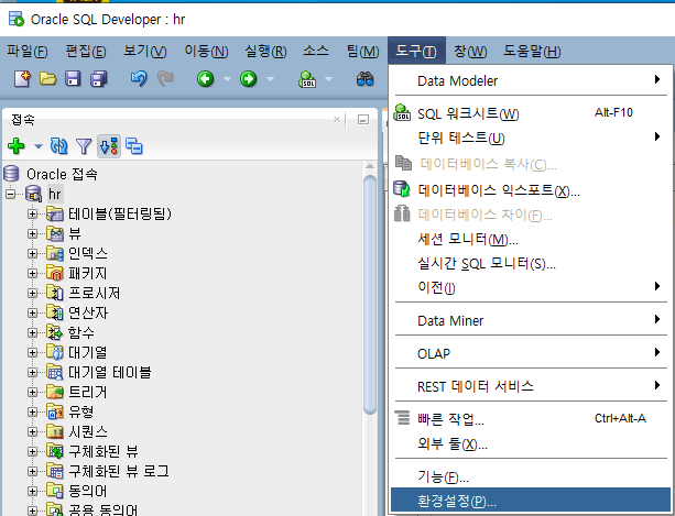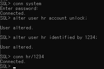 alter user hr identified by 1234; hr계정 비밀번호 1234적용
