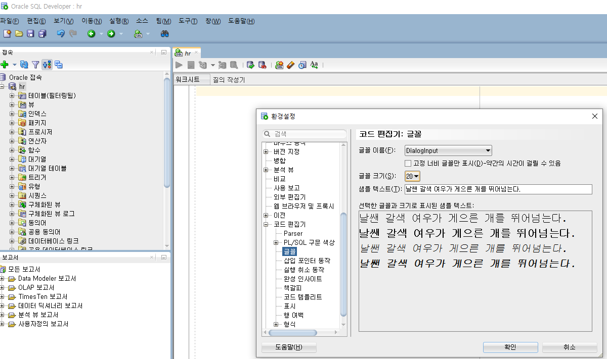왼쪽 상단에 + 버튼 클릭후 사용자이름 hr 비밀번호도 hr 눌러줍니다