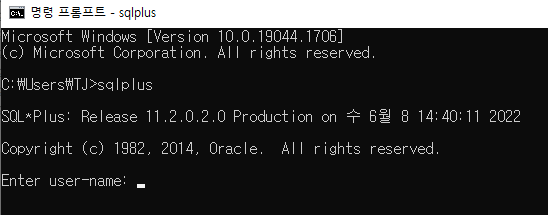 sqlplus 를 쳐보면 아이디와 비밀번호 치는게 나옵니다.