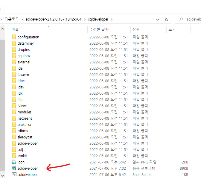 폴더 들어가주고 sqldeveloper 더블클릭후 설치