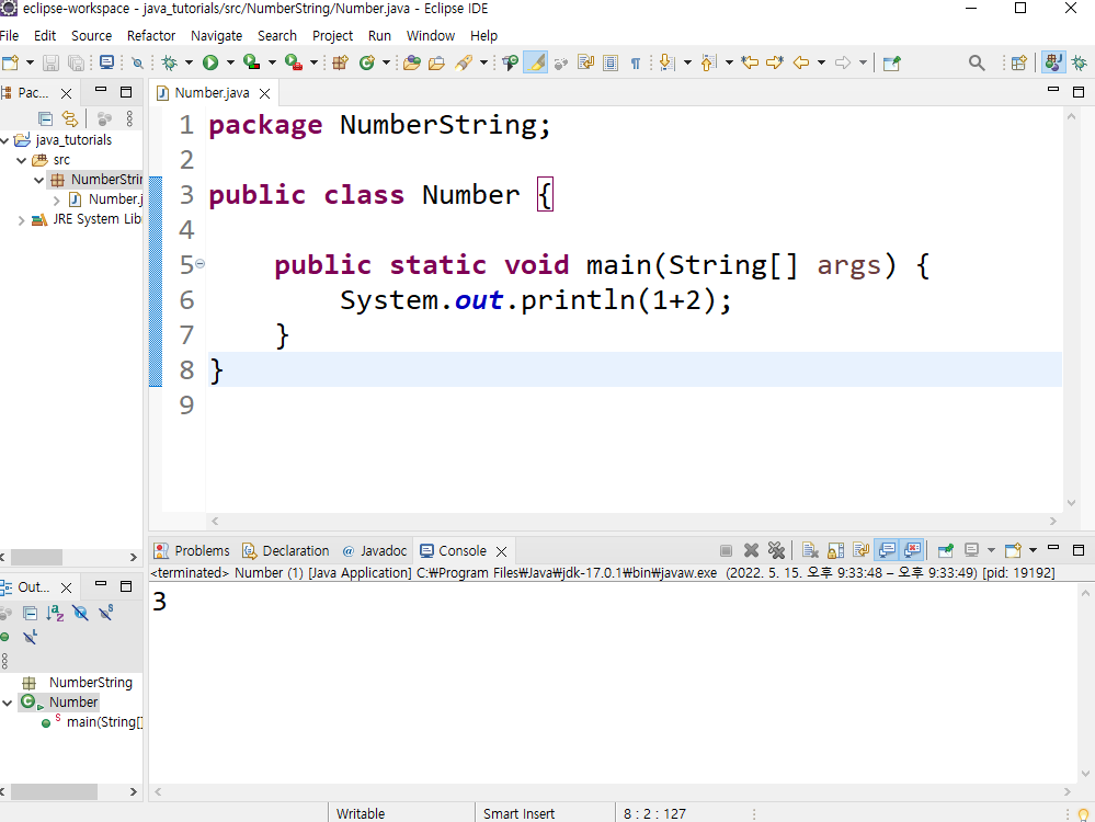 일단 간단하게 ()안에 1+2를 써보고 작동시켜봅니다.