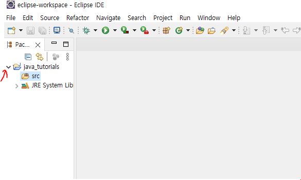 빨간 표시된 화살표를 누르면 폴더가 나옴 src폴더에 다시 마우스 오른쪽 클릭 new를 누르고 package선택