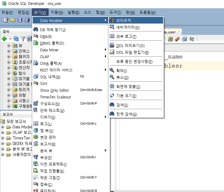 화면 왼쪽상단 보기에서 브라우저 클릭