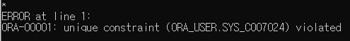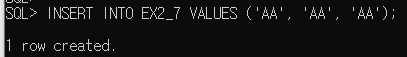 SQL> INSERT INTO EX2_7 VALUES ('AA', 'AA', 'AA');