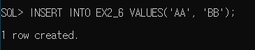 SQL> INSERT INTO EX2_6 VALUES('AA', 'BB');