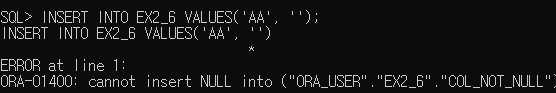 SQL> INSERT INTO EX2_6 VALUES('AA', '');