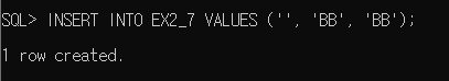 SQL> INSERT INTO EX2_7 VALUES ('', 'BB', 'BB');