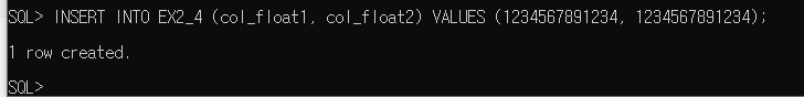 SQL> INSERT INTO EX2_4 (col_float1, col_float2) VALUES (1234567891234, 1234567891234);