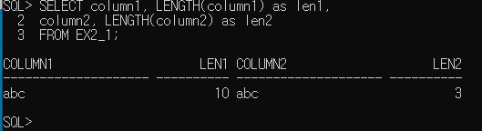 SQL> SELECT column1, LENGTH(column1) as len1,
