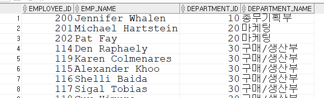 FROM 절을보면 테이블 명 다음에 a, b라고 명시해놓고 SELECT와 WHERE절에서 'a'.'b' 컬럼 형태로 사용하는데, 이 이 a,b는 별칭(alias)이라고 합니다. 즉 employees란 이름 대신 a,departments 대신 b를 사용한다고 기술 한 것입니다.
