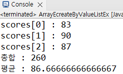 // 식을 풀어쓰면 scores[0]+scores[1]+scores[2] 이렇게 되는것임