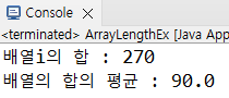 배열에 값을 넣고 합과 평균을 내는 예제코드