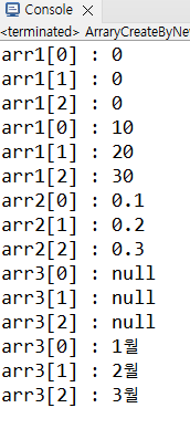 System.out.println("arr3[" + i + "] : " + arr3[i]);
