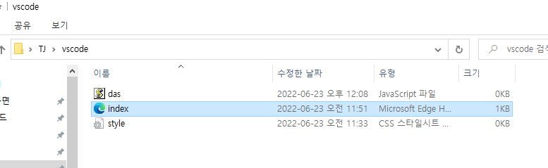 원하시는 이름.html / css / js라고 적으시면 그 이름의 파일로 같이 만들어집니다.