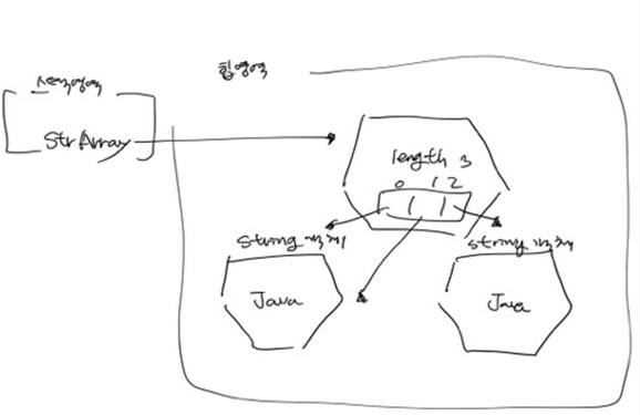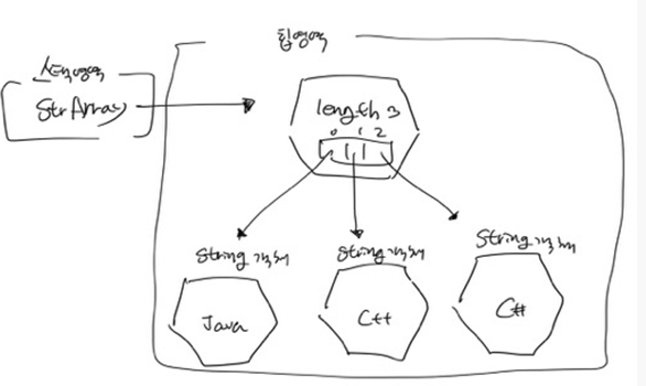 예를 들어 String 은 클래스 타입이므로 String[] 배열은 각 항목에 문자열이 아닌 String 객체의 주소를 가지고 있습니다.