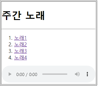 <li><img src ="" alt =""><a href ="">노래1</a></li>