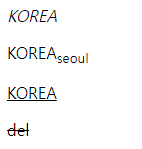 <ins>글씨</ins> 를 넣으면 글씨에 밑줄이 그어진것을 확인 가능합니다.