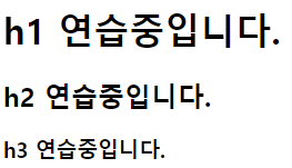 h1부터 h6까지 있으며 h1부터 h6으로 갈수록 글자크기가 줄어드는것도 볼수있고 <br>테그를 사용하지않아도 줄넘김이 되는것을 확인할수있습니다.