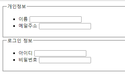 기본형 <filedset [속성="속성 값"] > ... </fieldset>