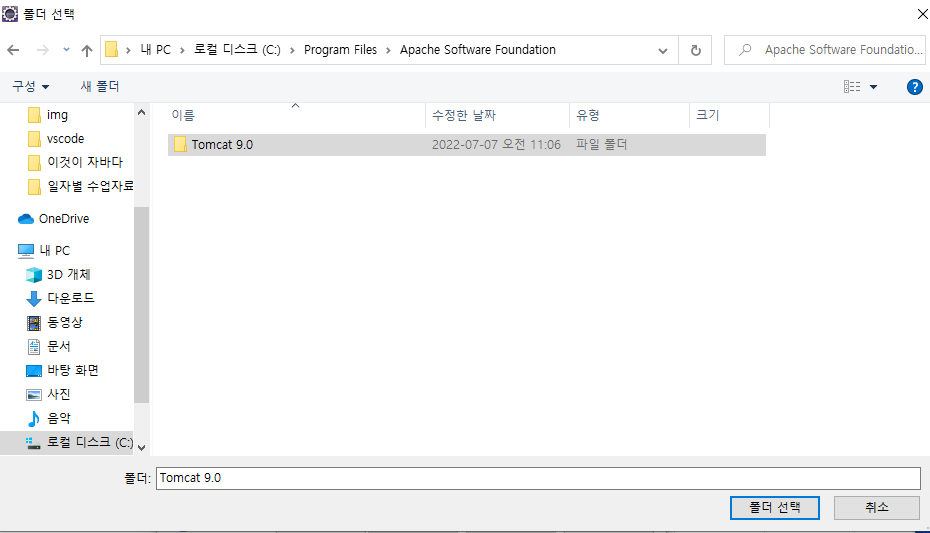 브라우저 눌러주시고 경로 C:\Program Files\Apache Software Foundation\Tomcat 9.0