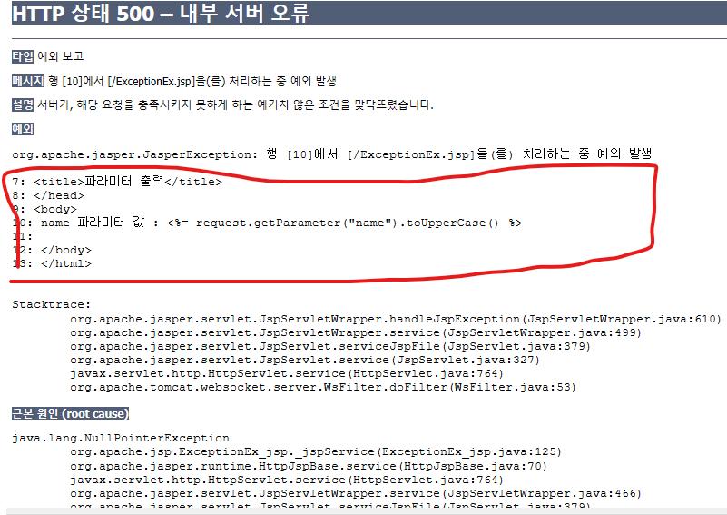 익셉션이 발생하면서 요렇게 지정한 JSP 페이지가 사용된걸 볼수 있습니다.